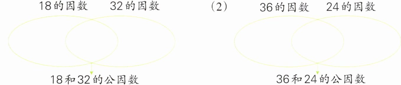 18和32的最大公因数是( )。 36和24的最大公因数是( )。