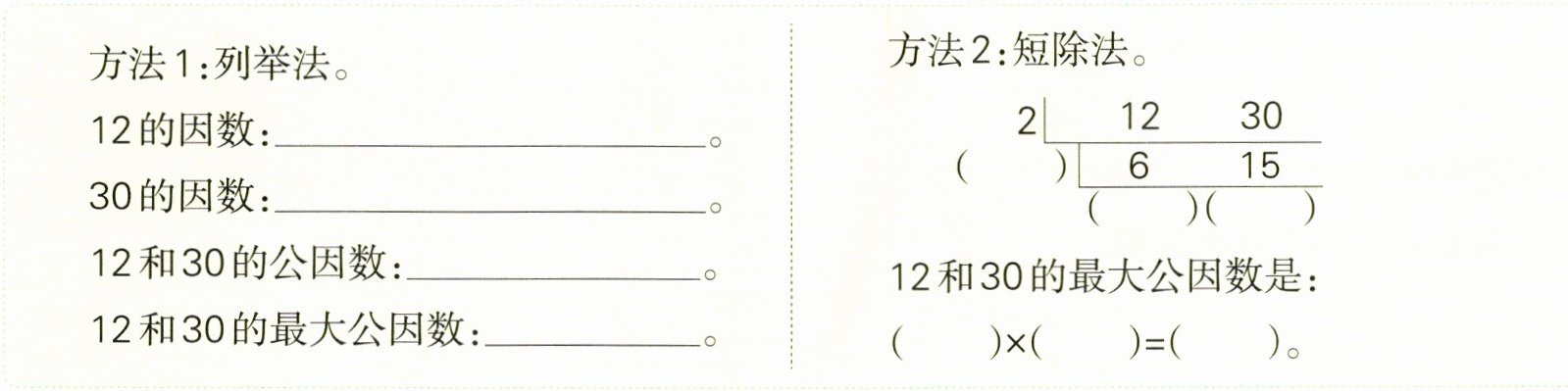 1. [新趋势·算理探究]求12和30的最大公因数。
