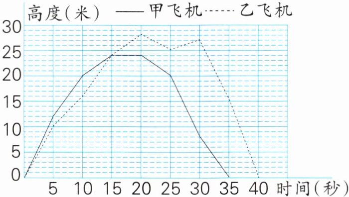 (2)从图上看,起飞后第10秒乙飞机的高度是( )米,起飞后第( )秒两架飞机处于同一高度,起飞后大约第( )秒两架飞机的高度相差最大。