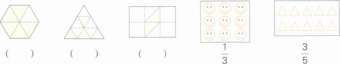 1. 用分数表示下列各图的涂色部分或在图中涂色表示对应的分数。