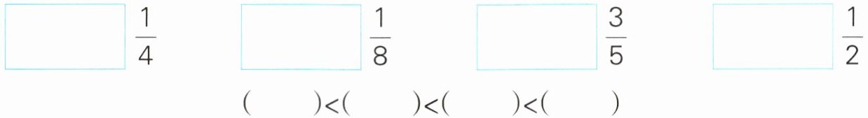 3. 分一分,涂一涂,并把这些分数按从小到大的顺序排列。