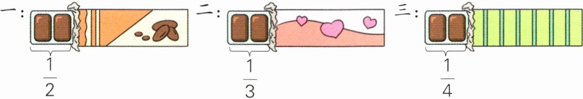 第三盒巧克力最多,第一盒巧克力最少。 理由:根据分数的意义,用□代表露出的巧克力,我们可以画出每一盒巧克力的示意图。