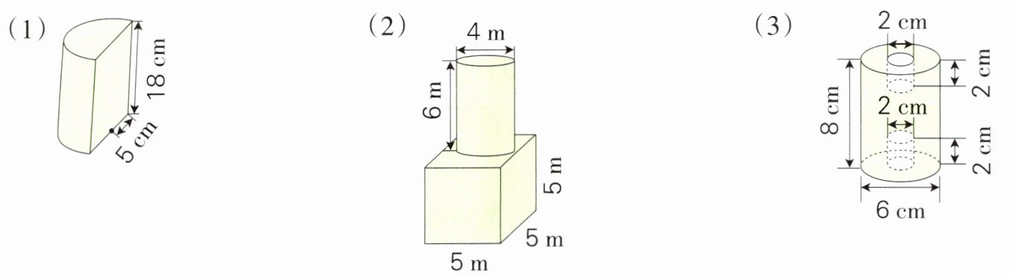 $78.5 + 282.6 + 180 = 541.1(cm^{2})$@@$5^{2}×6 + 3.14×4×6 = 225.36(m^{2})$@@$6÷2 = 3(cm)$