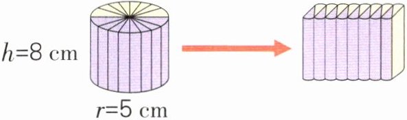 1. 将一个圆柱等分后拼成一个近似的长方体,下面说法正确的是( )。