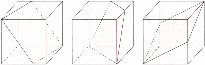 2. 下面是同一个正方体的几种不同切法,截面分别是什么形状?试着画一画。
