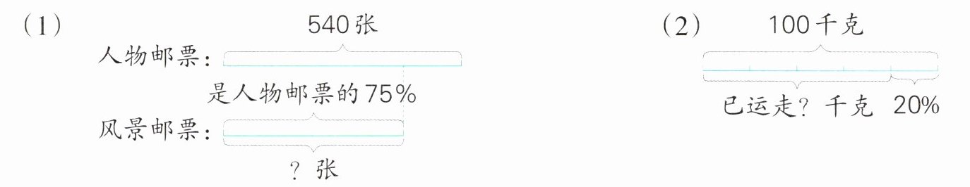 540×75% = 405(张)@@100×(1 - 20%) = 80(千克)