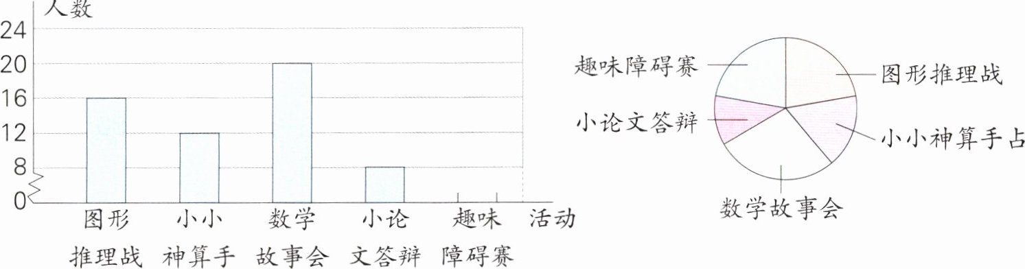 (3)最喜欢“小论文答辩”的人数是最喜欢“数学故事会”的( )%,最喜欢“小小神算手”的人数是最喜欢“趣味障碍赛”的( )%。