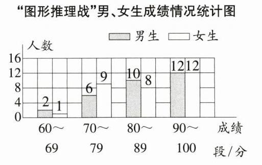 1. 参加“图形推理战”的同学成绩基本情况如下表。