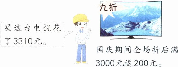 解:设这台曲面液晶电视的原价是x元。 $90\%x - 200 = 3310$ $x = 3900$