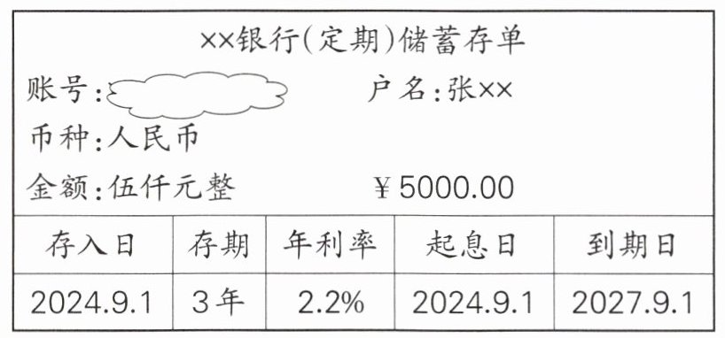 (1)张阿姨的本金是( )元,存期是( )年,年利率是( )。