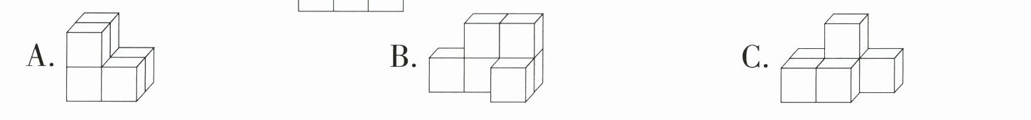 4. 从前面、上面和左面观察一个立体图形,看到的图形如下,则这个立体图形是由( )个小正方体搭成的。