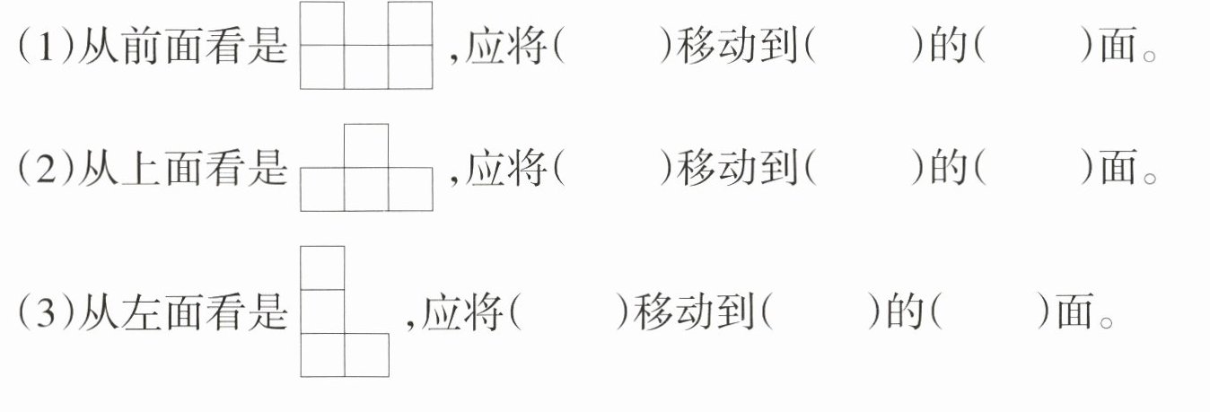 3. 移动下面立体图形中的小立方体,使移动后的立体图形符合指定的条件。(9分)