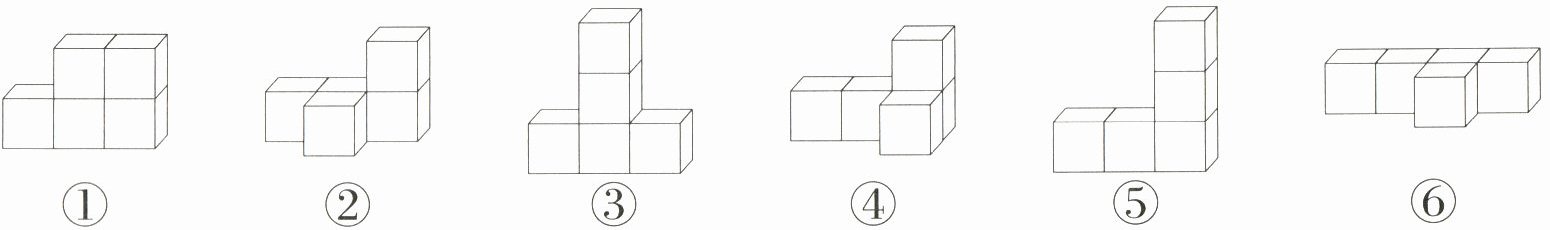 5. 用5个同样大小的正方体可以摆成下面的立体图形,仔细观察并填一填。