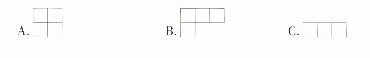 4. 乐乐用5个同样大小的正方体搭立体图形,右面是她从不同的方向观察到的图形,则从上面看到的图形可能是( )。