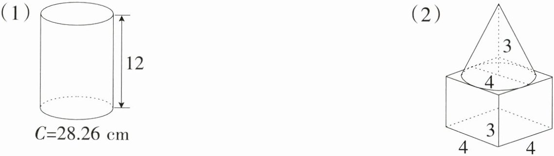 (1) $3.14×(28.26÷3.14÷2)^2×12 = 763.02(cm^3)$