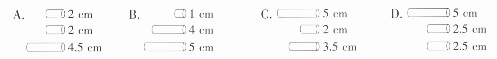 2. 下列各组木棒中,能围成三角形的是( )组。