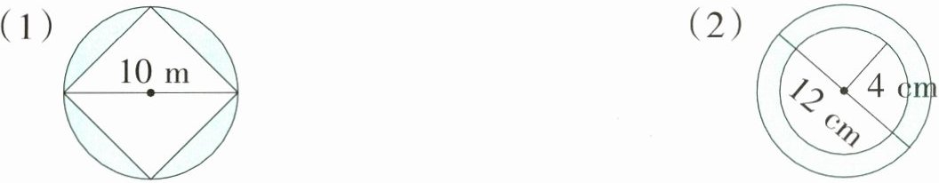 (2) $3.14×[(12÷2)^2 - 4^2]=62.8(cm^2)$