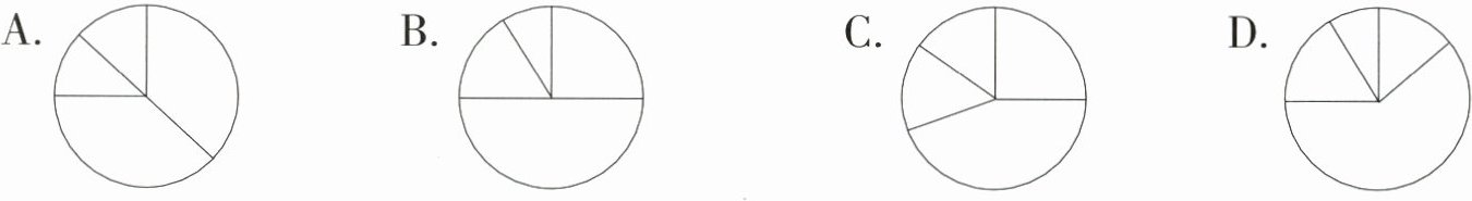 5. 六年级一班 60 名学生上学期都参加了社团活动,参加合唱社团的有 30 人,参加乒乓球社团的有 5 人,参加羽毛球社团的有 10 人,参加美术社团的有 15 人,下面图( )可以表示六年级一班 60 名学生上学期参加社团活动的情况。