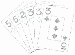 6. 玲玲手里拿着几张扑克牌(如右图),让琪琪闭上眼睛,从中任意抽取一张,琪琪可能抽到( )种不同数字的扑克牌,抽到数字( )的可能性最大,抽到数字( )的可能性最小。