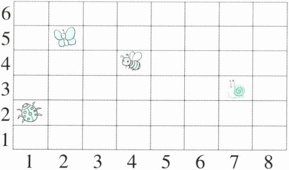 1. 物体的位置可以用数对表示,如数对(2,4)表示第( )列,第( )行,数对(1,3)表示第( )列,第( )行。