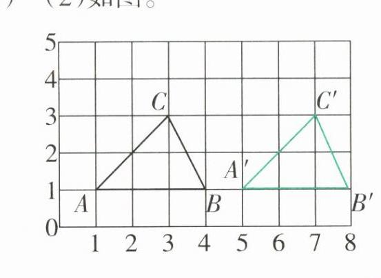 (2)画出三角形ABC向右平移4格后的图形A'B'C'。(3分)
