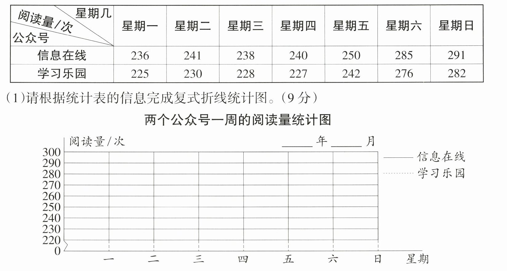 2.下面是某学习网站的两个公众号一周的阅读量统计表。