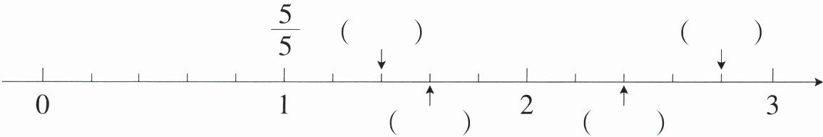 7. 在直线上面的括号里填假分数,直线下面的括号里填带分数。