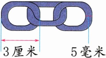 3.(探究题)如图,把3个大小相同的铁环连在一起,拉紧后的总长度是( )厘米。