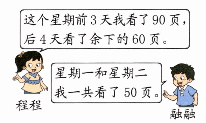 5. (难点题)程程和融融看同一本书,都在一个星期内看完。融融从星期三到星期日一共看了多少页?
