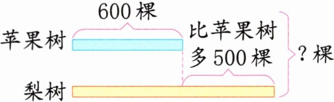 $600 + 500 = 1100$(棵) $1100 + 600 = 1700$(棵)