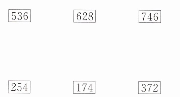 方法二:可以先找出个位相加等于0或10的数,536、746的个位都是6,因为6+4=10,所以下面一行数中174、254有可能和536、746相加得1000,那么到底是不是呢?这就需要我们进行准确计算后再判断。628的个位是8,因为8+2=10,所以下面一行数中372有可能和628相加得1000,接着用竖式计算来验证。