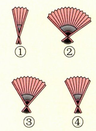 折扇打开的过程中形成了大小不同的角,请将这些顺序打乱的角按从大到小的顺序排列。(用“>”连接)