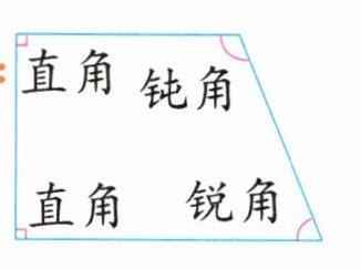 思路导引:用三角尺上的直角和上图中的4个角比一比,其中有2个直角、1个钝角和1个锐角。