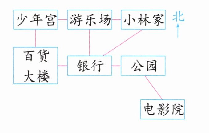 3. 小林想从家去电影院看电影,可以怎样走?如果回家时按原路返回呢?请你先描述出小林的行走路线,再描述出小林的返回路线。(15分)