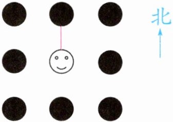 ● 先向北移动3格,再向西移动4格,然后向东南移动2格。