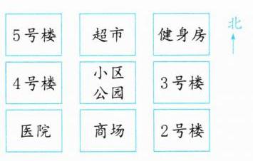 1. 医院在小区公园的西南方向,4号楼在医院的北面,5号楼在4号楼的北面,商场在医院的东面,健身房在小区公园的东北方向。请在图中空格处写出各建筑的名称。(15分)