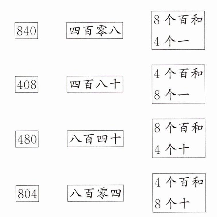 (3)按从小到大的顺序写出3个十位上是4的三位数。