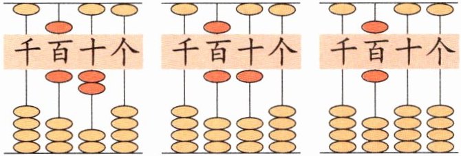 3.(探究题)先观察算盘上表示的数,再找一找规律。如果按照这样的规律排列下去,那么第四个数应该是( )。