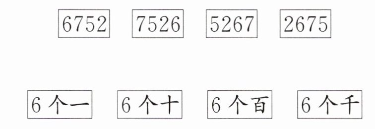 3.(易错题)每个数中的“6”各表示多少?连一连。