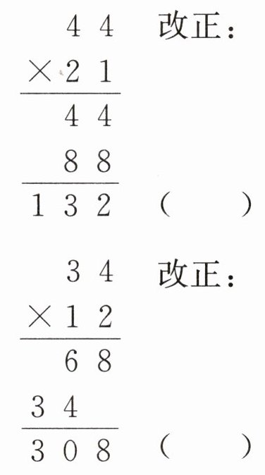 $44×21 = 924$ $34×12 = 408$ 竖式略