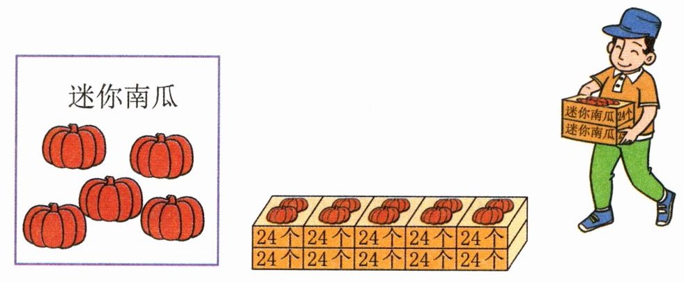 [教材第3页例3]幼儿园购进12箱迷你南瓜,每箱24个。一共有多少个?