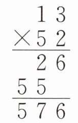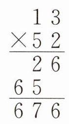 误点分析:错误解法错在用52中的5乘13时,积的十位上漏加了个位进上来的1。