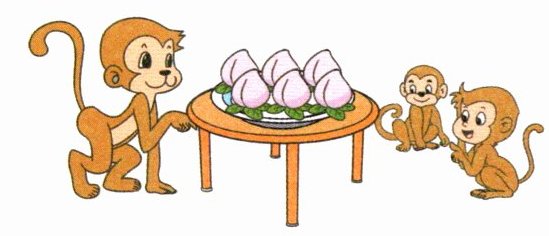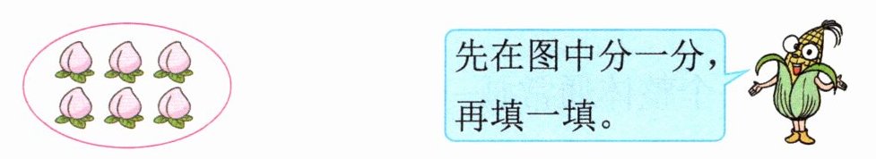 [教材第76页例1] 把一盘桃平均分给2只小猴,每只小猴分得这盘桃的几分之几?