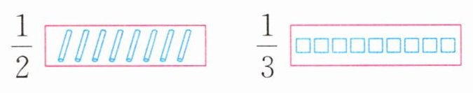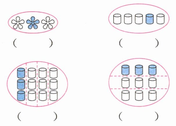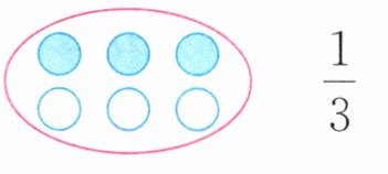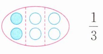 例题2 根据下图右边的分数,在图中分一分,并涂色表示。