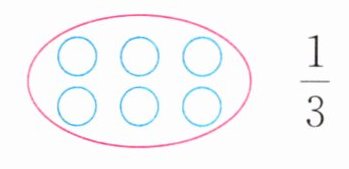 [教材第76页例2] 把一盘桃平均分成3份,每份是这盘桃的$\frac{(\ \ \ \ )}{(\ \ \ \ )}$。