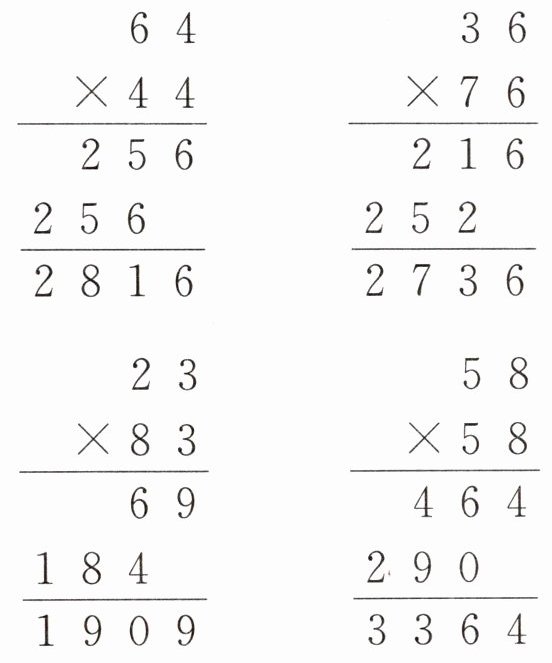 $64\times44=$ $36\times76=$