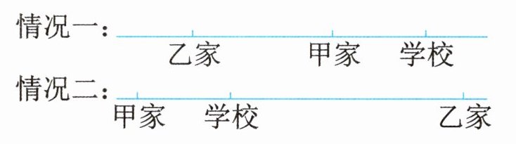 思路导引:根据题意,可以求出乙走的路程。甲、乙两名同学的家和学校在同一条直线上,但没说明两人的家在学校的同侧还是两侧,因此两人的家相距的米数有两种情况。如下图: