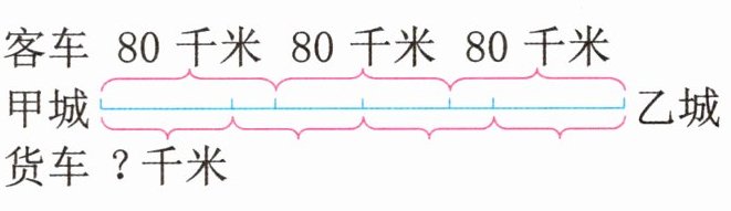 例题2 客车和货车同时从甲城出发开往乙城。客车每小时行80千米,3小时后到达乙城,货车到达乙城时共用去4小时。货车每小时行多少千米?