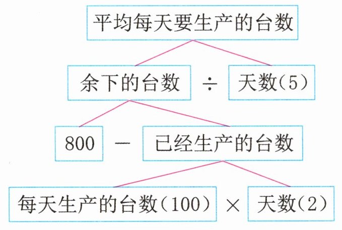 例题2 某工厂计划生产800台机器,已经生产了2天,每天生产100台。余下的要在5天内完成,平均每天要生产多少台?