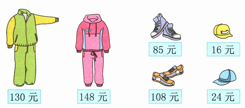 小明和爸爸带300元去运动服饰商店购物。